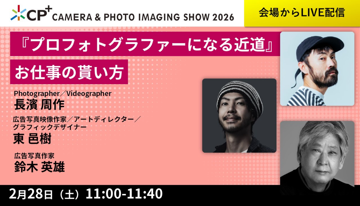 パシフィコ横浜にて毎年開催される、カメラと写真映像のワールドプレミアショー「CP+(シーピープラス)のトークステージに、日本広告写真家協会【APA】副会長・鈴木英雄さんと北海道支部・長濱周作さんとご一緒に登壇いたします。