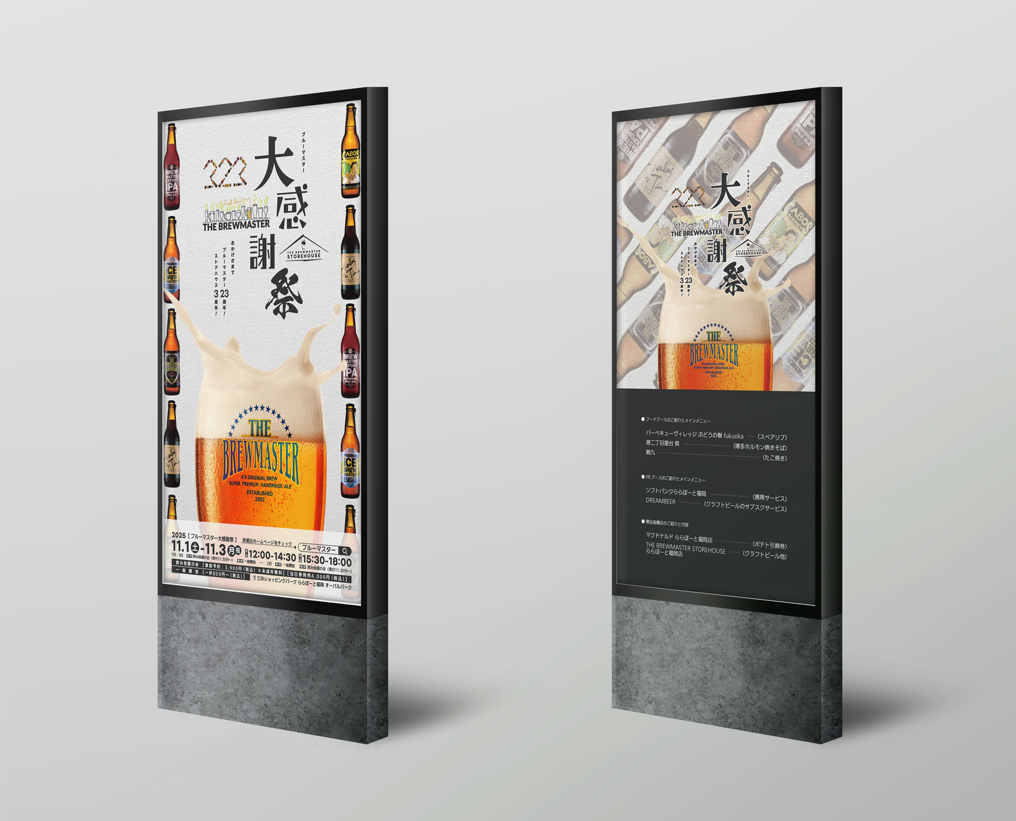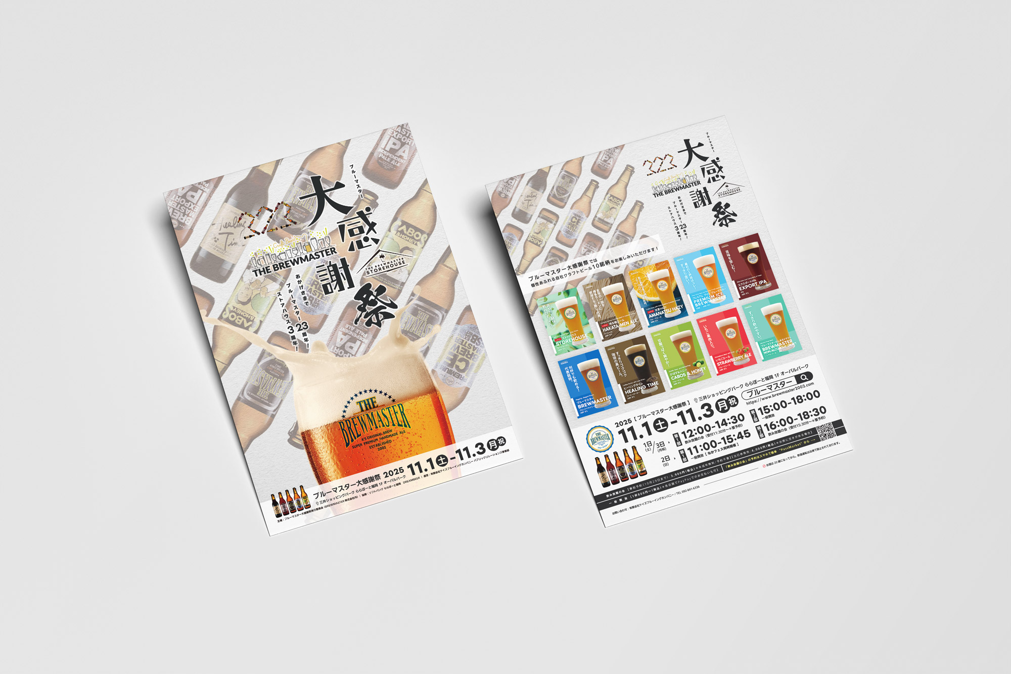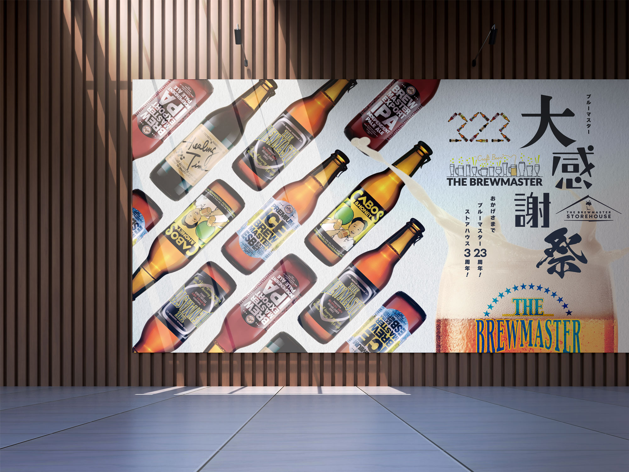 創業23周年ブルーマスターの大感謝祭。ヴィジュアルコミュニケーションツール関連のデザインを制作。