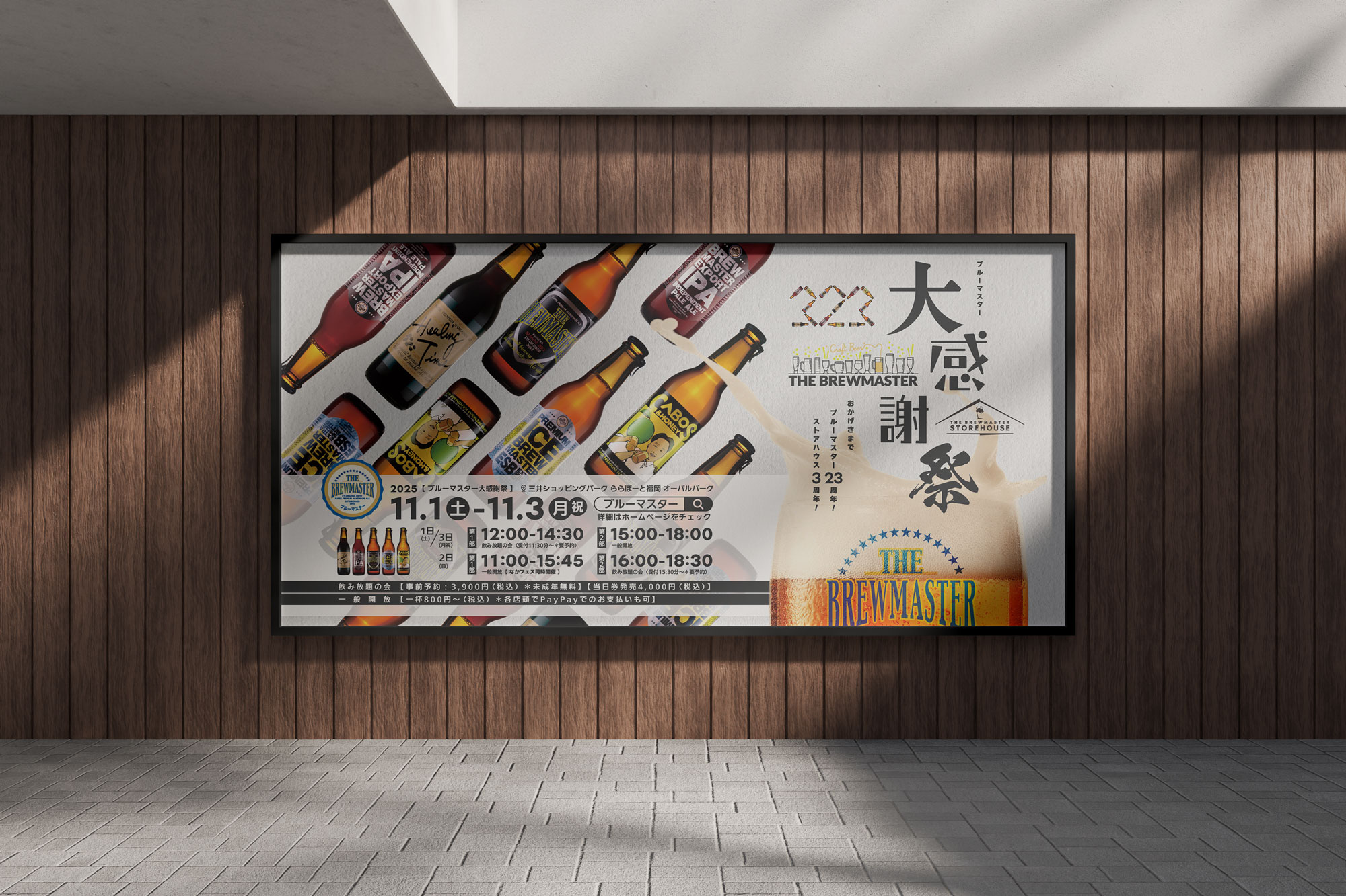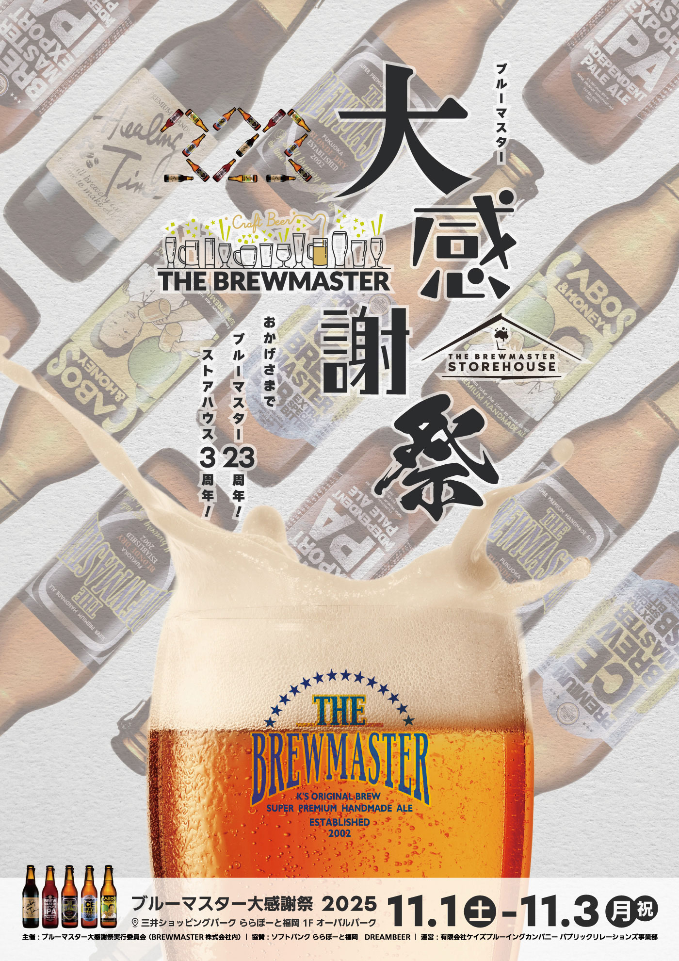 「ブルーマスター」は、2002年に福岡市城南区にて開業したブルワリーで、毎年秋に『感謝祭』を開催しておりましたが、昨年10月にららぽーと福岡内のバーベキューレストランで『大感謝祭』として15年ぶりに開催。好評いただいた今回は、屋外広場「オーバルパーク」にて期間・規模を拡大して実施いたします。